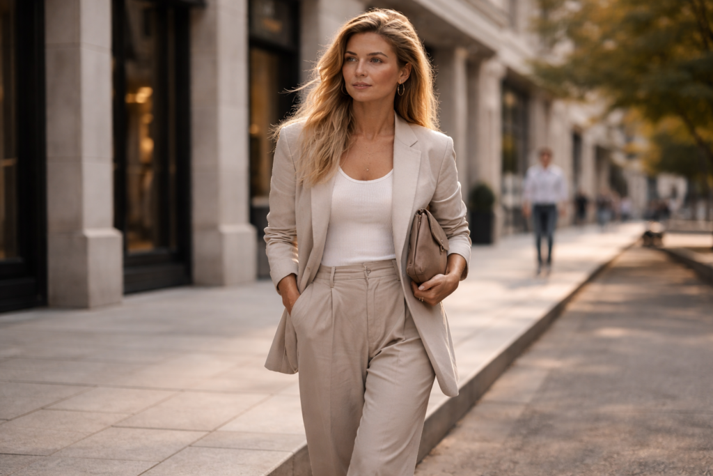 Este desplazamiento tiene consecuencias claras en el día a día. La ropa arreglada ya no necesita imponerse para transmitir profesionalidad o cuidado. Puede hacerlo desde la caída del tejido, la amplitud controlada o la elección de materiales más amables. La elegancia se vuelve más discreta y más compatible con el movimiento.