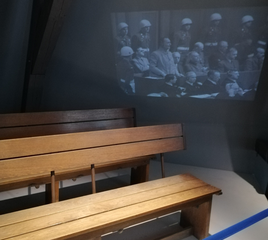 Banquillo de los acusados de los Juicios de Núremberg / Fotografía de elaboración propia. ©Memorial de los Juicios de Núremberg